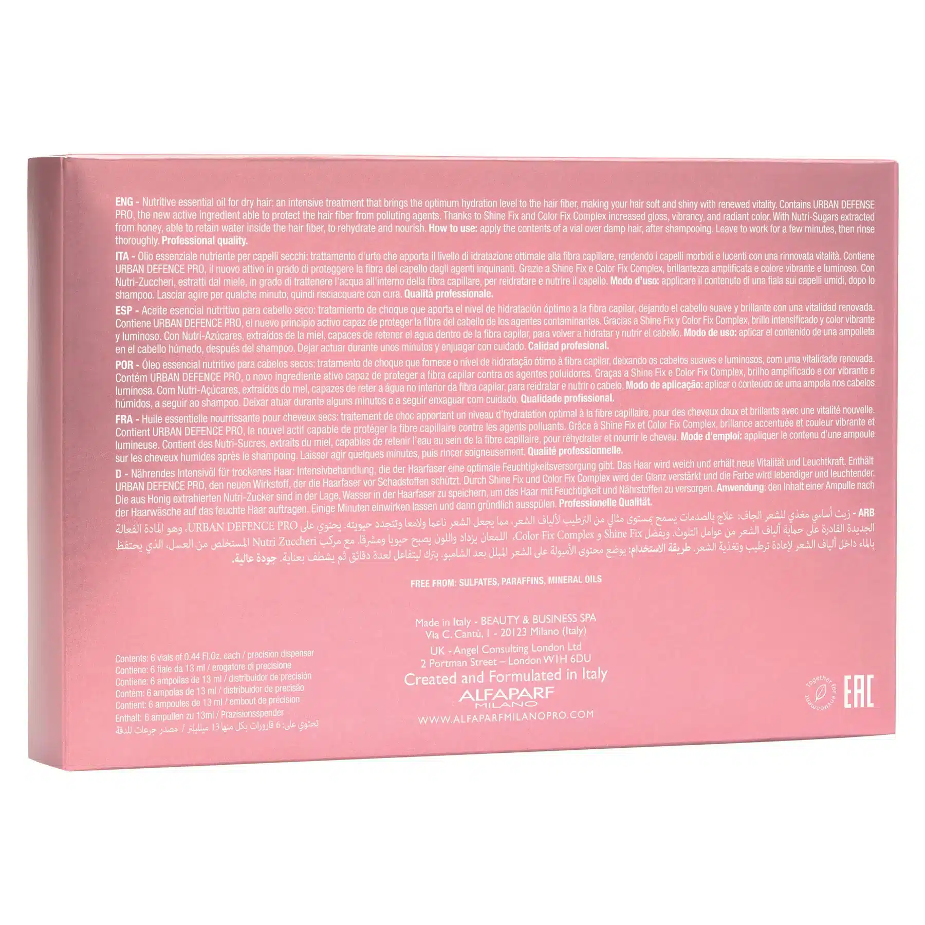 Alfaparf Semi Di Lino Moisture Nutritive Essential Oil 6x13ml is powered by Semi Di Lino technologies, including Shine Fix Complex for long-lasting shine and Urban Defence Pro to protect hair from pollution, this treatment helps keep hair hydrated, smooth, and radiant.