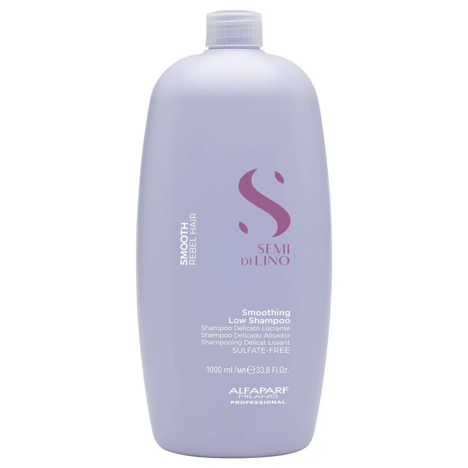 Alfaparf Semi Di Lino Smooth Smoothing Low Shampoo is a professional smoothing shampoo designed to gently cleanse frizzy and unruly hair while helping control frizz and improve hair manageability. Its delicate sulfate-free formula removes impurities while maintaining the hair’s natural moisture balance.