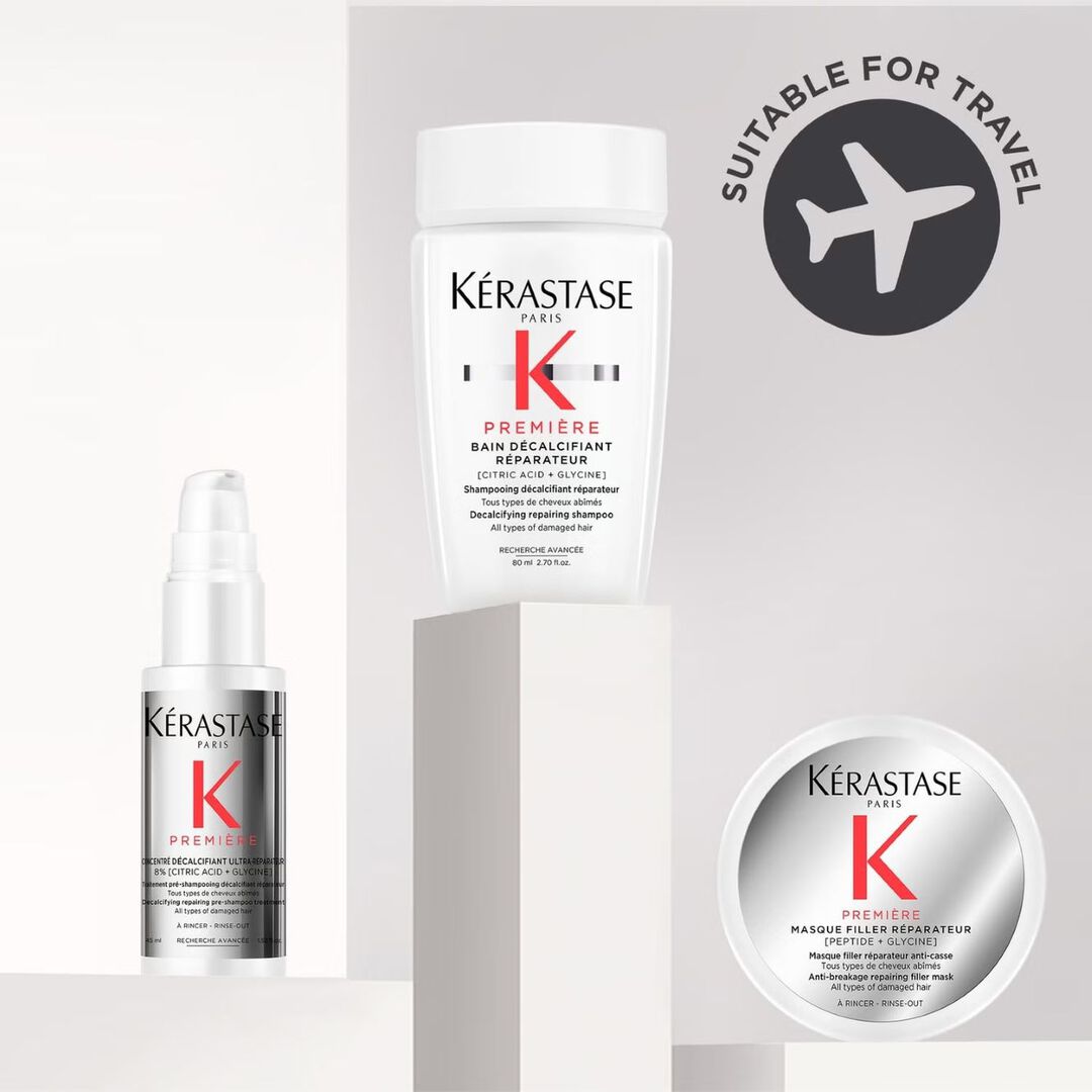Unlock salon-level repair and nourishment with the Kérastase Première Set for Damaged Hair. This starter kit is carefully curated to help fragile, damaged, or chemically treated hair regain strength, softness and vitality — all with the quality and efficacy that define the Kérastase name.