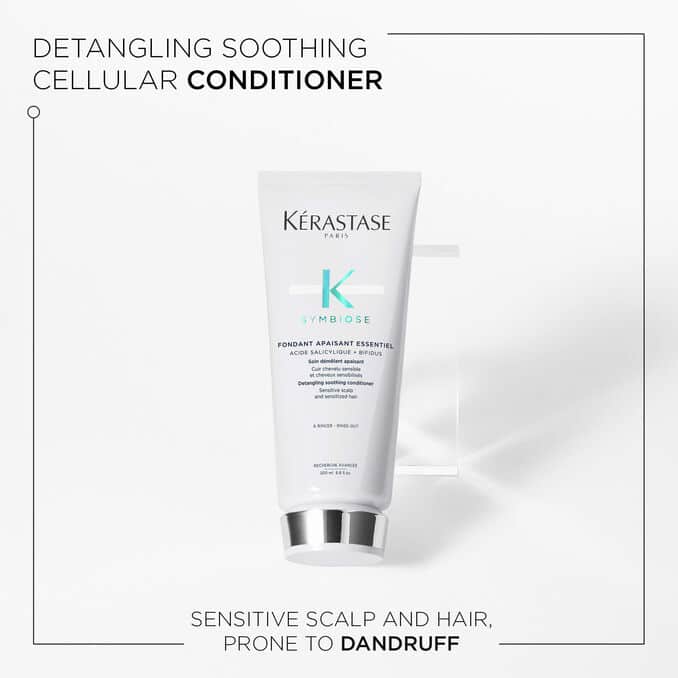 Soothe and rebalance your scalp with the Kérastase Symbiose Fondant Apaisant Essentiel 200ml, a lightweight yet deeply nourishing conditioner specially designed for sensitive scalps prone to dandruff. Formulated with Salicylic Acid, Bifidus Extract, and Squalane, this luxurious formula helps remove visible flakes, hydrate dry scalp skin, and restore the scalp’s natural barrier — leaving both hair and scalp refreshed, comfortable, and perfectly balanced.
