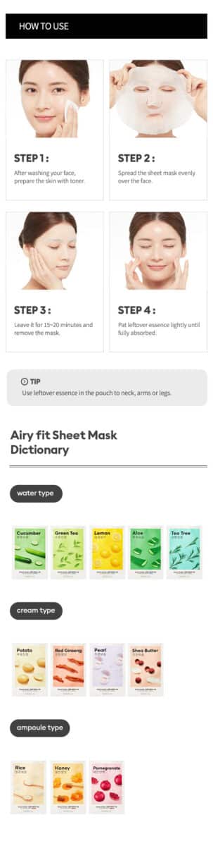 MISSHA Airy Fit Sheetmasks for every skin concern!