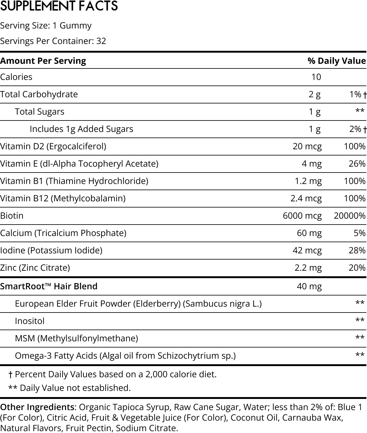 Sugarbear Hair Vitamin Gummy 1 Month Supply Extra Strength Biotin 6000mcg, Growth for Men & Women, Vegan Vitamin B12, MSM, Inositol, Omega 3, Elderberry, Certified Kosher, Halal, Cruelty-Free