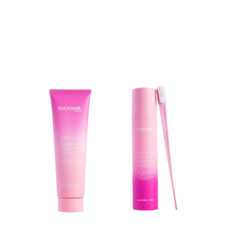 Tame frizz, hydrate strands, and smooth flyaways in one step with the Slickhair DREAM CREAM & Anti-Flyaway Gel Duo — your go-to set for sleek, glossy, salon-worthy hair every day.